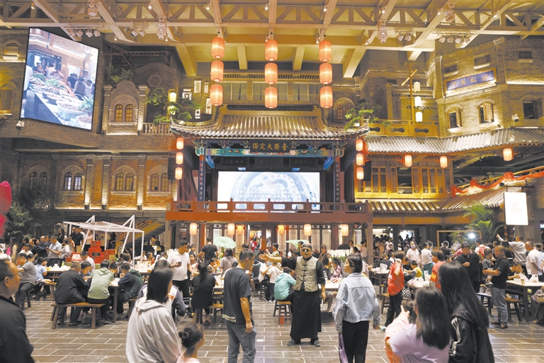 集靴城記憶、市井街巷、亭臺樓閣、園林書院、網(wǎng)紅打卡和國潮國風(fēng)等于一身,保定宴飲食博物館大堂內(nèi)游客和食客絡(luò)繹不絕。(資料片)曹云鵬攝