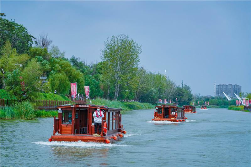 為保障大運河滄州中心城區(qū)段順利通航,滄州市在2021年完成引水1.8億立方米的基礎上,今年上半年完成引調水3億立方米,不僅實現(xiàn)了大運河滄州段全線通水,也將沿線的風景串珠成鏈、連點成片。同時,滄州市開展河道清淤疏浚,實施綠化提升工程,完善配套設施建設,新建12座旅游碼頭和6座步行景觀橋,對8座現(xiàn)有市政橋梁進行了美化優(yōu)化。