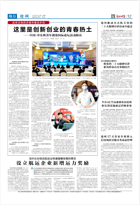 滄州市委、市政府高度重視青年創(chuàng)新創(chuàng)業(yè)工作,一年舉辦一次的中國-中東歐國家(滄州)中小企業(yè)合作論壇為中國、中東歐國家青年交流創(chuàng)新創(chuàng)業(yè)經(jīng)驗、服務(wù)“一帶一路”建設(shè)提供了新機(jī)遇。此次論壇的成功舉辦,為中國和中東歐青年交流對話搭建了橋梁,讓更多國內(nèi)外青年認(rèn)識、了解滄州,也為中國-中東歐國家(滄州)中小企業(yè)合作區(qū)注入了青春活力。