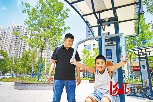 7月10日,位于滄州市永安南大道與康寧路交叉口附近的口袋公園內(nèi),市民正在使用健身器材。河北日?qǐng)?bào)記者張昊攝