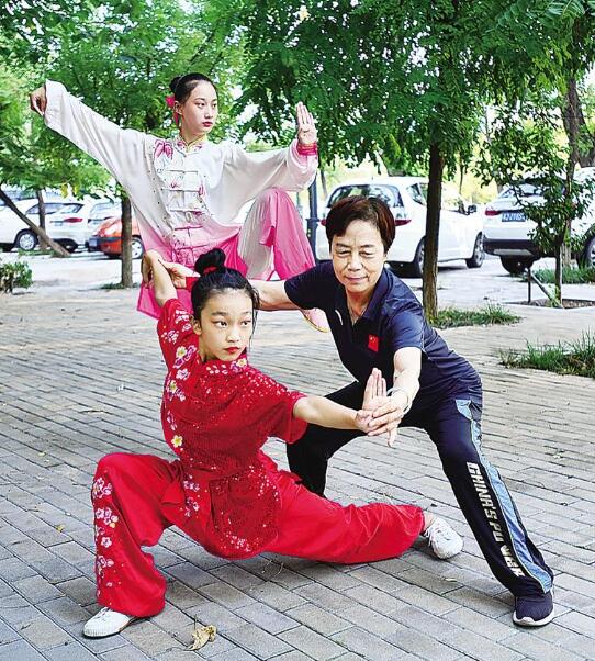 “金牌教練”時(shí)中秀指導(dǎo)學(xué)生們練武。小時(shí)候,她就在運(yùn)河邊習(xí)武。攝影 王少華
