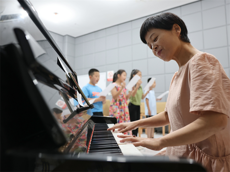 8月23日,音樂老師帶領(lǐng)小朋友在河北省滄州市青縣市民文化活動(dòng)中心聲樂培訓(xùn)室進(jìn)行聲樂訓(xùn)練。新華社記者 駱學(xué)峰 攝
