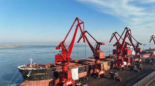1月30日,黃驊港綜合港區(qū)散貨碼頭,正在進(jìn)行貨物卸載作業(yè)。 河北日?qǐng)?bào)記者 戴紹志攝