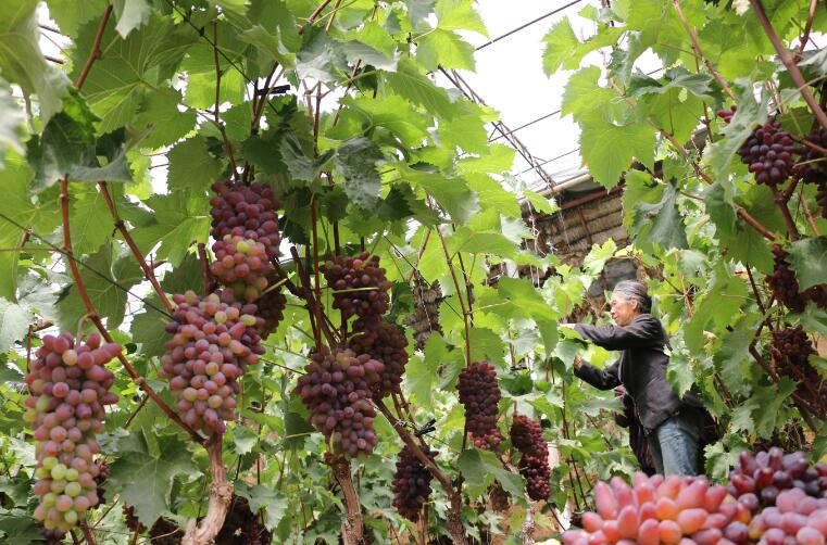 近日,位于燕山腹地的河北省平泉市道虎溝鄉(xiāng)設(shè)施茉莉香葡萄成熟上市,吸引市民前來采摘。近年來,平泉市道虎溝鄉(xiāng)依托當(dāng)?shù)毓庹粘渥、晝夜溫差大的氣候?yōu)勢(shì),通過“企業(yè)+基地+農(nóng)戶”的方式,引導(dǎo)農(nóng)民發(fā)展設(shè)施葡萄、桃、大櫻桃等水果種植,帶動(dòng)農(nóng)民增收致富,助力鄉(xiāng)村振興。 新華社發(fā)(劉環(huán)宇攝)