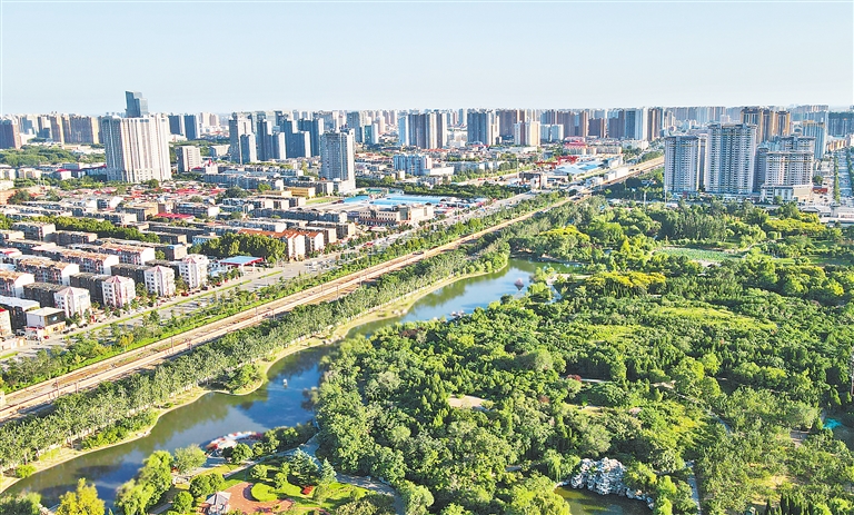 9月3日,無人機拍攝的位于邯鄲市復(fù)興區(qū)的趙苑公園一角。 河北日報記者史晟全攝