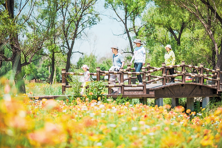 沁河郊野公園通過疏浚河道,引水溪入樹林,在樹林下設(shè)置了棧道、平臺,為居民提供了休閑、娛樂的空間。 河北日報資料片