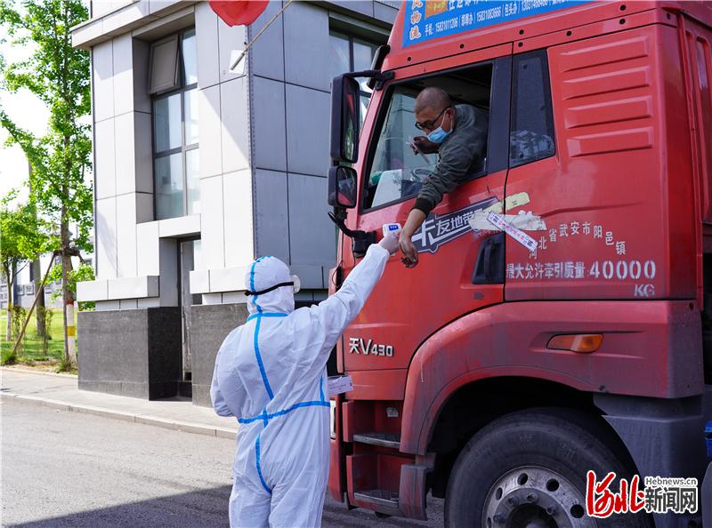 日前,在武安市,大貨車進入企業(yè)時都要查碼測溫。河北日報通訊員王海波攝
