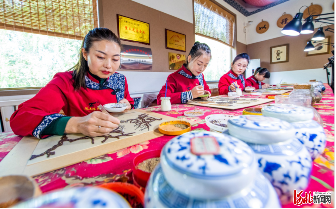館陶縣糧畫(huà)小鎮(zhèn)引入糧畫(huà)制作特色產(chǎn)業(yè),帶動(dòng)留守婦女在家門(mén)口就業(yè)增收。館陶縣委宣傳部供圖