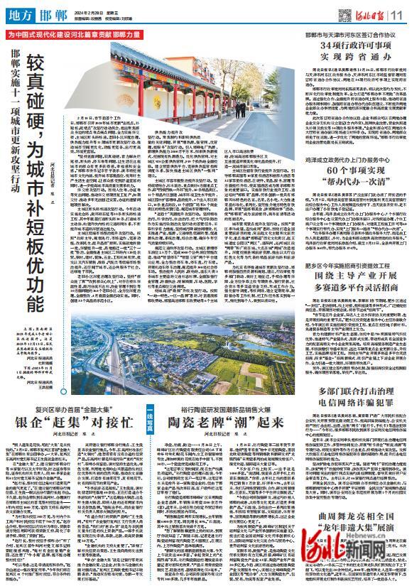 2月18日,春節(jié)后首個工作日,邯鄲市召開2024年城市更新“出亮點(diǎn)、補(bǔ)短板、疏堵點(diǎn)”攻堅行動動員會,提出聚焦群眾身邊的堵點(diǎn)難點(diǎn)痛點(diǎn)問題,全力實(shí)施保交樓、主城區(qū)斷頭路暢通、老舊小區(qū)深度治理、供熱能力提升等11項(xiàng)城市更新攻堅行動,推動城市空間更優(yōu)化、功能更完備、出行更高效、環(huán)境更宜居。