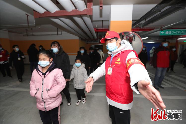 固安縣黨員志愿者組織居民有序排隊進(jìn)行核酸檢測。