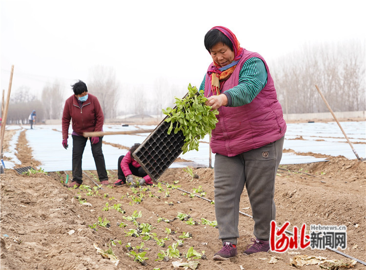 2月27日,在固安縣宮村鎮(zhèn)北趙二村田間,農(nóng)戶正在栽種娃娃菜。通訊員吳迪攝