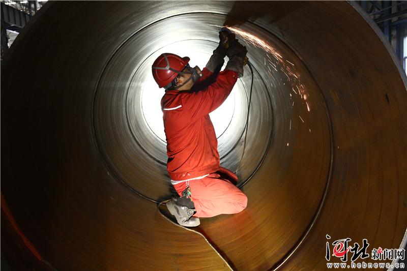 圖為中油寶世順(秦皇島)鋼管有限公司技術人員在對鋼管進行打磨作業(yè)。 王繼軍攝