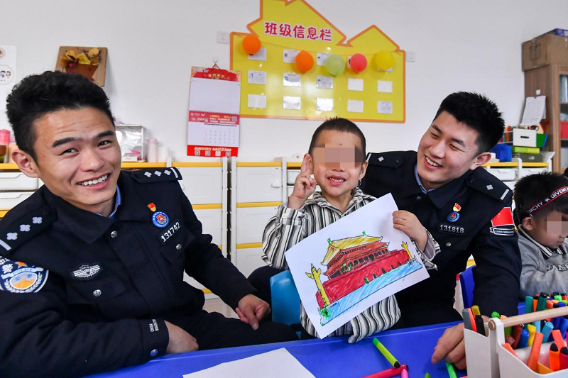 在秦皇島市殘疾人康復(fù)中心,該站民警通過互動(dòng)游戲、共同繪畫、贈(zèng)送文具等多種形式,向聽障兒童傳遞愛與溫暖,讓他們茁壯成長;顒(dòng)中,民警和孩子們圍坐在一起,用水彩筆畫出了五星紅旗、天安門、人民英雄紀(jì)念碑等圖案,民警還親切地向孩子們講解各種圖案的名字和含義,讓孩子們?cè)谳p松愉快的氛圍中學(xué)到了多種知識(shí),在民警和孩子們的共同努力下,一幅幅色彩艷麗的畫作展現(xiàn)在大家面前,孩子們愉快地向民警展示自己的畫作,并與民警合影留念。繪畫結(jié)束后,民警和孩子們手拉手一起做游戲、跳健身操,現(xiàn)場不時(shí)傳出歡聲笑語;顒(dòng)最后,民警為孩子們發(fā)放了文具、玩偶作為紀(jì)念品,讓孩子們獲得心靈和生活的雙重幫助。
