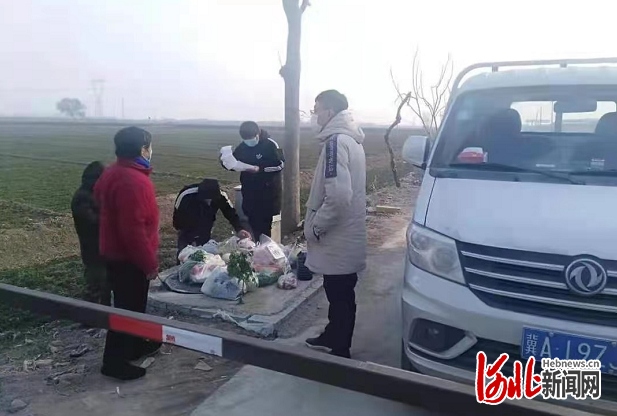 圖為石家莊市欒城區(qū)柳林屯鄉(xiāng)保障群眾生活物資志愿服務(wù)隊(duì)為群眾送去生活必需品。