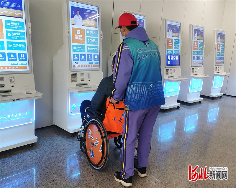志愿者們正式上崗。在一樓自助服務大廳,志愿者們幫助就診患者使用醫(yī)院電子設(shè)備,幫其辦理就診卡、查詢報告、預約掛號。在綜合就診大廳及樓梯口,解答就醫(yī)人員問題,為患者指引方向,幫助其盡快找到看病科室,讓患者就醫(yī)過程更加順暢。