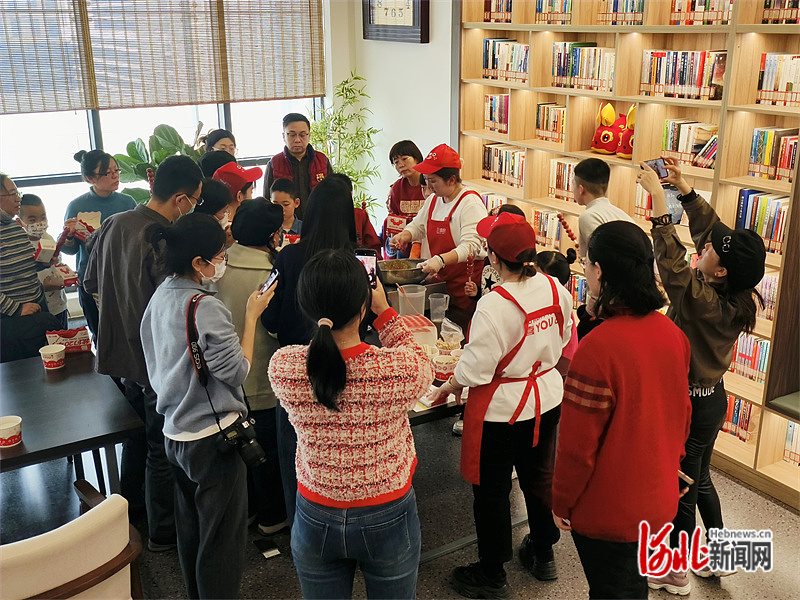 活動現場,喜識冰糖葫蘆技師向大家介紹了糖葫蘆的歷史、山楂的藥用價值,穿串、制作糖衣,從水糖如何配比,到如何熬制糖液,如何正確制串等,并現場示范傳授山楂糖葫蘆、水果糖葫蘆、紅豆綠豆檸檬等夾餡系列的糖葫蘆制作技法,讀者們通過活動,了解了糖葫蘆的制作過程,更加深入認識了中國的傳統(tǒng)美食。不僅鍛煉了讀者們的動手操作能力,也能享受制作美食的樂趣,在滿滿的收獲中感受到濃郁的節(jié)日味道。