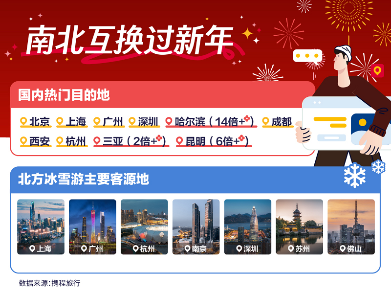 日前,攜程發(fā)布的《2024春節(jié)旅游市場(chǎng)預(yù)測(cè)報(bào)告》也顯示,北方冰雪、南方溫泉避寒“南北互換”游的形式是國內(nèi)游大熱門,春節(jié)期間總體旅游訂單同比增長(zhǎng)超7倍。