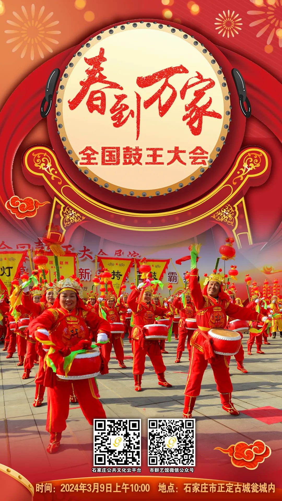 3月9日(正月二十九),“春到萬家——全國鼓王大會(huì)”集中展演活動(dòng)將在石家莊市正定南城門甕城舉辦。屆時(shí),來自全國的千余名鼓手將共同擂響奮進(jìn)強(qiáng)音,奉獻(xiàn)2024新春熱血沸騰的“文化大餐”。