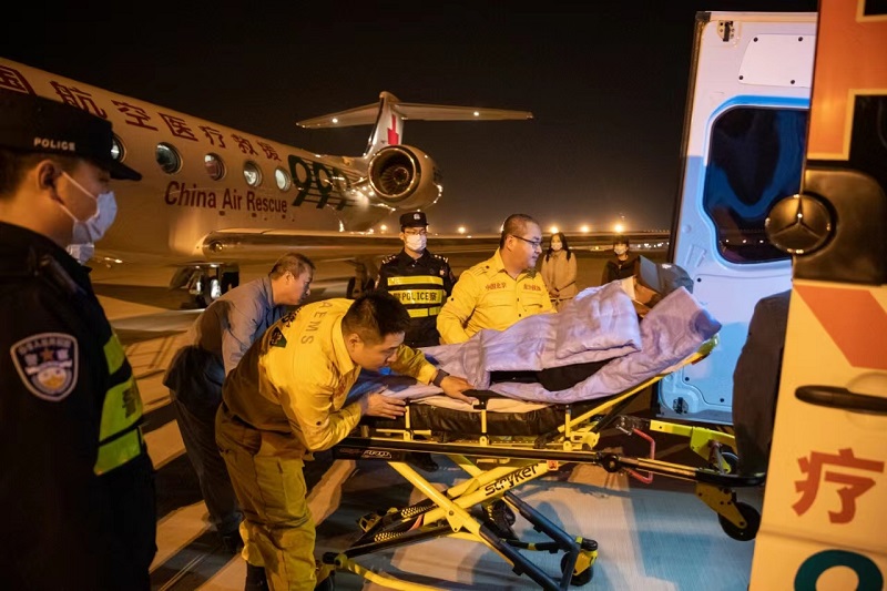 12日23時(shí)許,急救旅客及陪同家屬、醫(yī)務(wù)人員抵達(dá)停機(jī)坪。在一旁等候的移民管理警察順利對(duì)接,搶抓時(shí)間為相關(guān)人員辦理入境手續(xù),全力為傷者救治贏得寶貴時(shí)間。