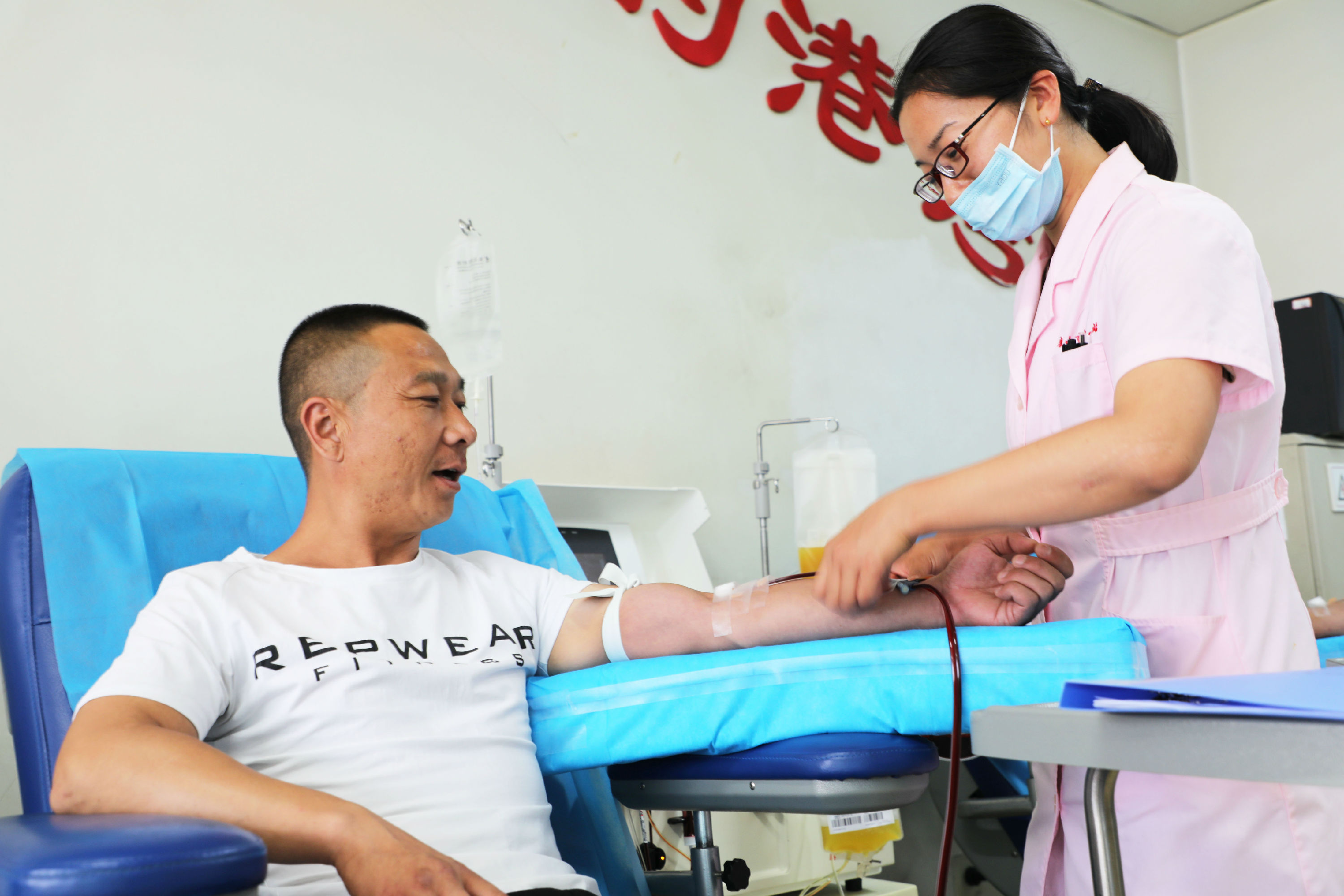 談起第一次獻(xiàn)血,42歲的熊曉猛記憶猶新。2006年4月的一天,在唐山抗震紀(jì)念碑廣場(chǎng)附近游玩時(shí),熊曉猛看見獻(xiàn)血車上懸掛著急需AB型血的條幅。當(dāng)兵體檢時(shí)知道自己是AB型血,他就抱著試試看的想法來到獻(xiàn)血車上。經(jīng)化驗(yàn)血液合格,他成功進(jìn)行了第一次獻(xiàn)血。獻(xiàn)血過程中,工作人員介紹說半年獻(xiàn)一次血不僅對(duì)身體沒有損傷,還有益處。從那時(shí)起,熊曉猛正式開啟了自己的獻(xiàn)血?dú)v程。