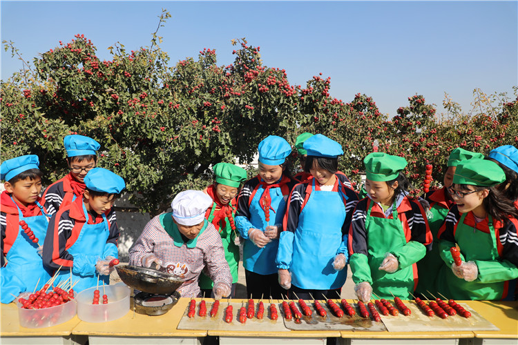 10月30日,豐潤區(qū)劉家營鄉(xiāng)明德小學的學生在民間藝人的指導下學做糖葫蘆。