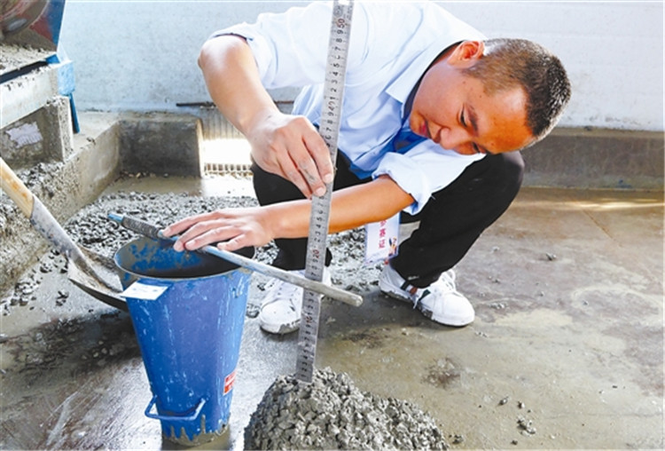 參賽選手進(jìn)行混凝土配合比試驗(yàn)比賽。