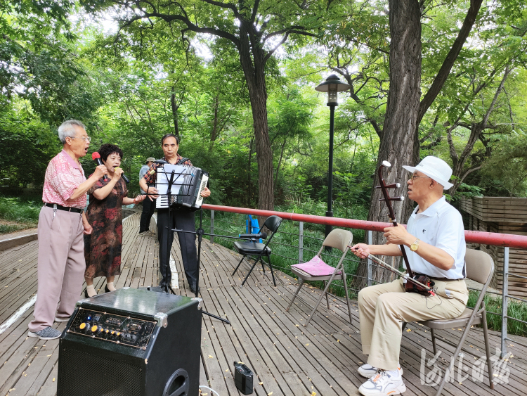 在公園附近居住了幾十年,韓長存對這里的諸多景觀如數(shù)家珍!肮珗@面貌的更新離不開精心維護,你看這荷香亭、煙雨湖、綠野仙蹤一步一景,池水、荷花、綠地點綴其間,我每天早晨來這里和票友們排練家鄉(xiāng)戲,心里美著呢!”