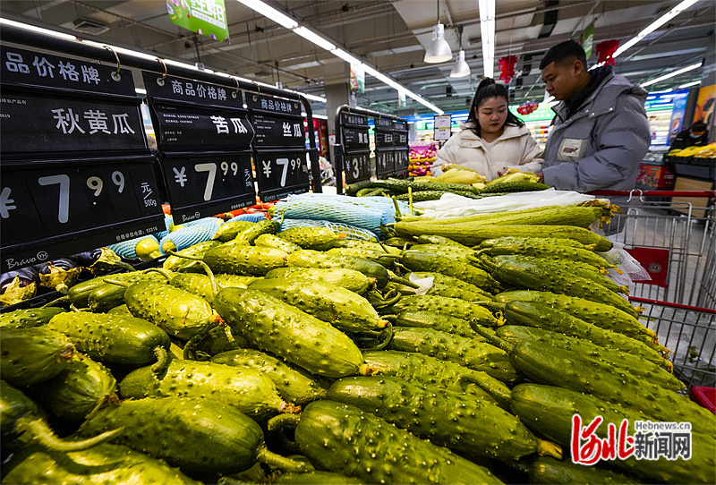 12月17日,顧客在河北省遵化一家超市選購的蔬菜。