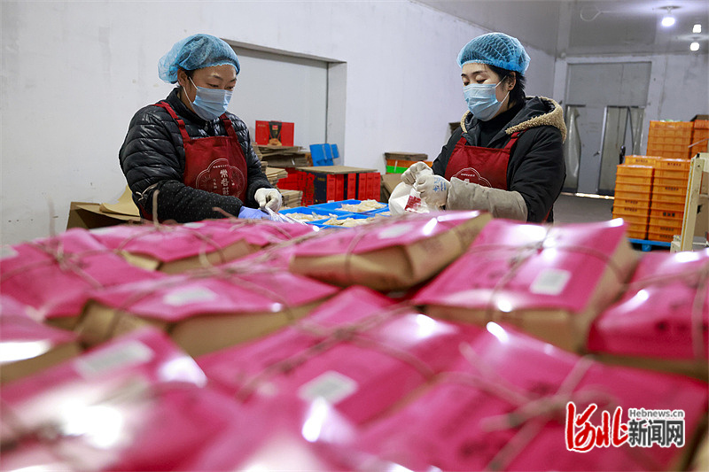 唐山市豐南區(qū)小集鎮(zhèn)一家食品加工企業(yè)的工人在生產(chǎn)車間進(jìn)行訂單產(chǎn)品包裝。