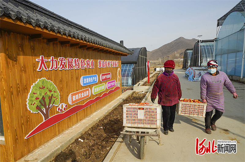 3月4日,河北省遵化市石門鎮(zhèn)石門一村的農(nóng)民在蔬菜種植基地搬運西紅柿,準備外運。