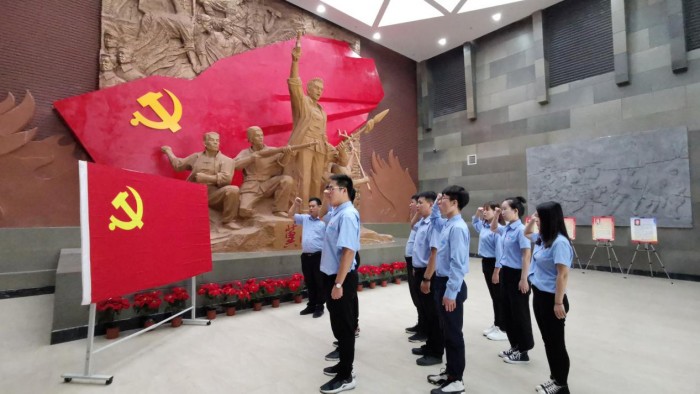 10月26日邯鄲區(qū)域經(jīng)理部組織優(yōu)秀黨員代表、優(yōu)秀團員代表20余人參觀冀南革命紀(jì)念館,全體黨員在紀(jì)念館面對黨旗重溫入黨誓詞,同志們以深切的緬懷之情,跟隨講解員的腳步依次參觀冀南暴動展廳、冀南抗日戰(zhàn)爭展廳和劉子厚紀(jì)念展廳,參觀結(jié)束后,2019年新入職青年黨員許廣華說:“緬懷先烈,永葆先進,作為一名共產(chǎn)黨員應(yīng)時刻保持自己的初心和使命感。”