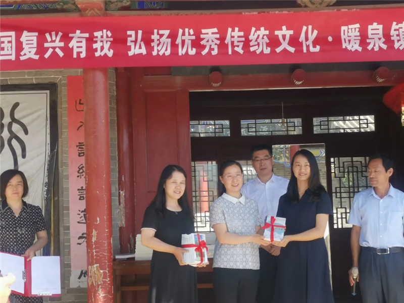 7月15日上午,河北省民間文化遺產(chǎn)研究中心、蔚縣暖泉鎮(zhèn)黨委政府、市工業(yè)和信息化局駐暖泉鎮(zhèn)東下官莊村鄉(xiāng)村振興工作隊(duì)共同在王敏書院(暖泉書院),舉辦了“強(qiáng)國(guó)復(fù)興有我,弘揚(yáng)優(yōu)秀傳統(tǒng)文化” 暖泉鎮(zhèn)民間文化研究基地揭牌儀式。河北省民間文化遺產(chǎn)研究中心主任、省民間文藝家協(xié)會(huì)副主席趙云旺,河北省文聯(lián)《小小說月刊》主編郭曉霞、《山花爛漫——河北民間文藝概覽》編校袁彥昭、河北省民間文化遺產(chǎn)研究中心齊春榮、王明新,縣人大常委會(huì)一級(jí)調(diào)研員于力等領(lǐng)導(dǎo)出席揭牌儀式,市縣工信局、縣文聯(lián)及暖泉鎮(zhèn)相關(guān)領(lǐng)導(dǎo)參加了活動(dòng)。