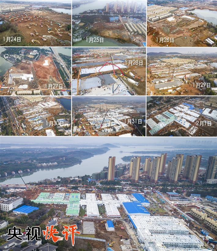 從1月23日正式立項到2月2日完工交付,短短十天,一座建筑面積達3.4萬平方米、編設床位1000張、設施完備的傳染病醫(yī)院拔地而起,成為抗擊疫情前線新的戰(zhàn)略支點。在網(wǎng)絡上,多達8000多萬人次的網(wǎng)民在線觀看央視頻全程直播武漢火神山、雷神山兩座醫(yī)院建造過程,為建設者鼓勁,為武漢加油!