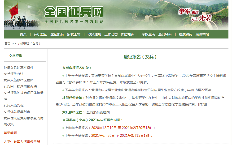 6月26日,2021年下半年女兵應(yīng)征報(bào)名開(kāi)始!