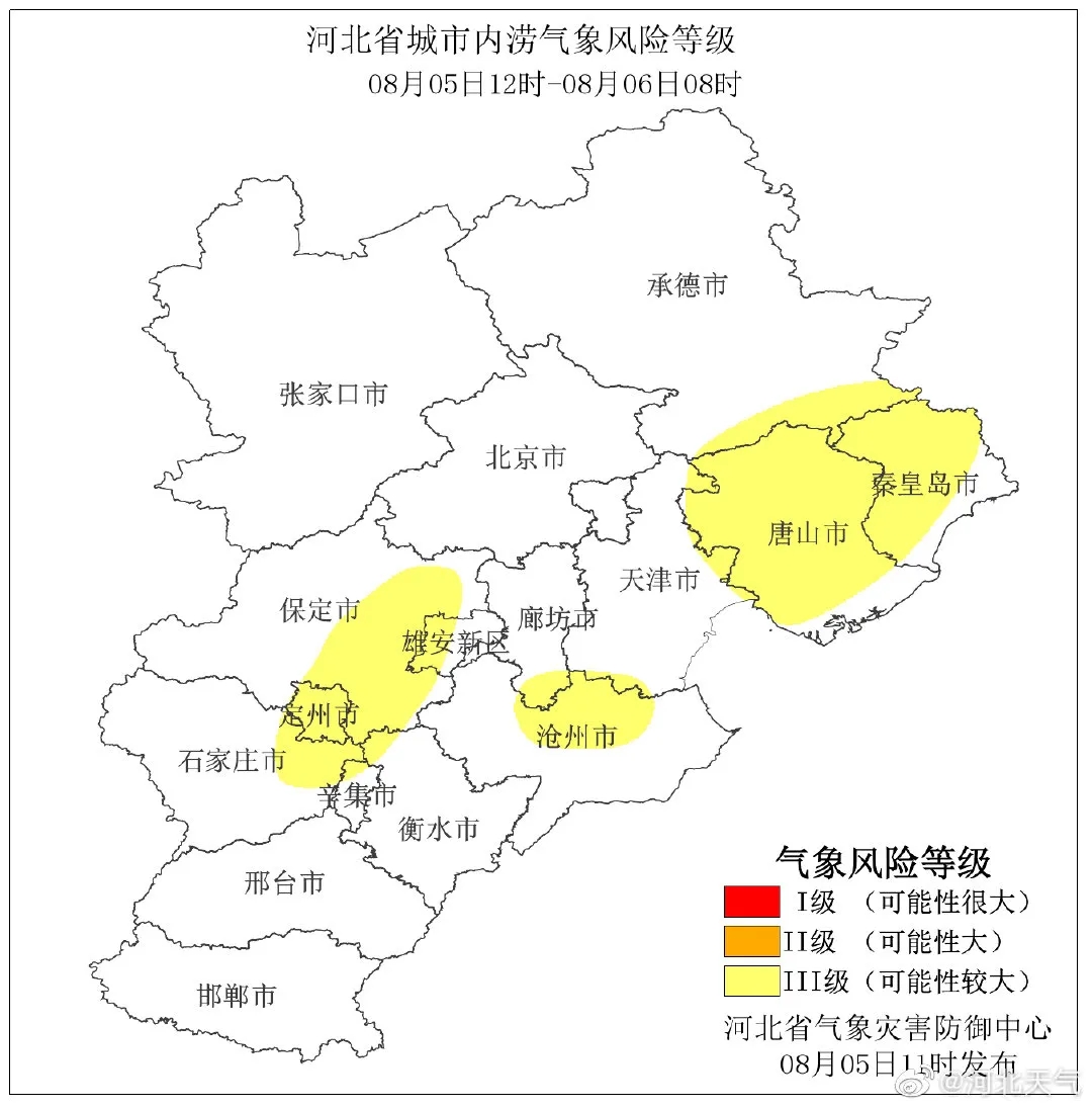 河北省氣象災害防御中心2021年08月05日11時發(fā)布城市內(nèi)澇氣象風險等級預報:
