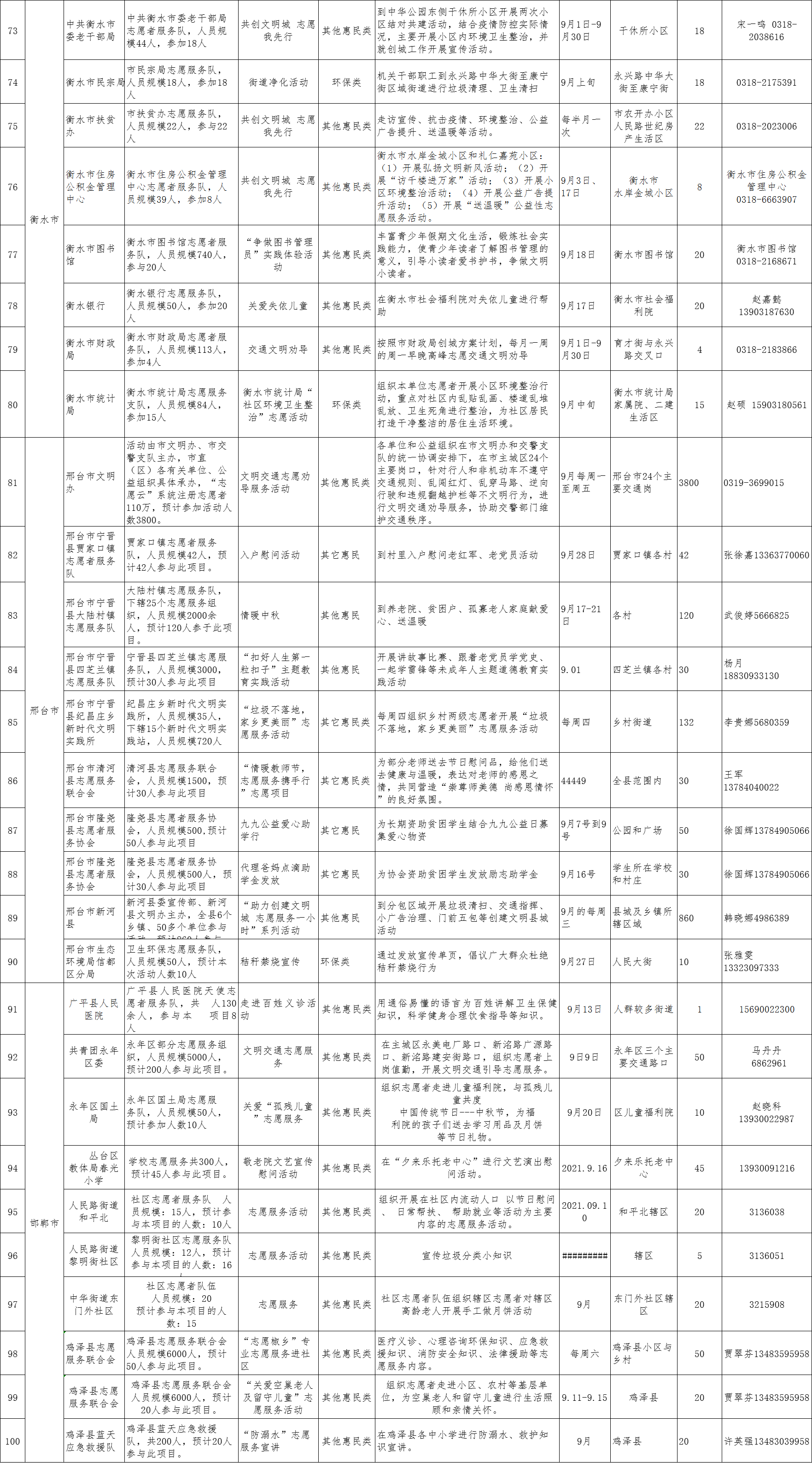 2021年9月,河北各地、省直有關(guān)單位計劃開展的志愿服務(wù)項目共計1175個,我們從中選取了118個具有典型意義的志愿服務(wù)項目進行集中發(fā)布。