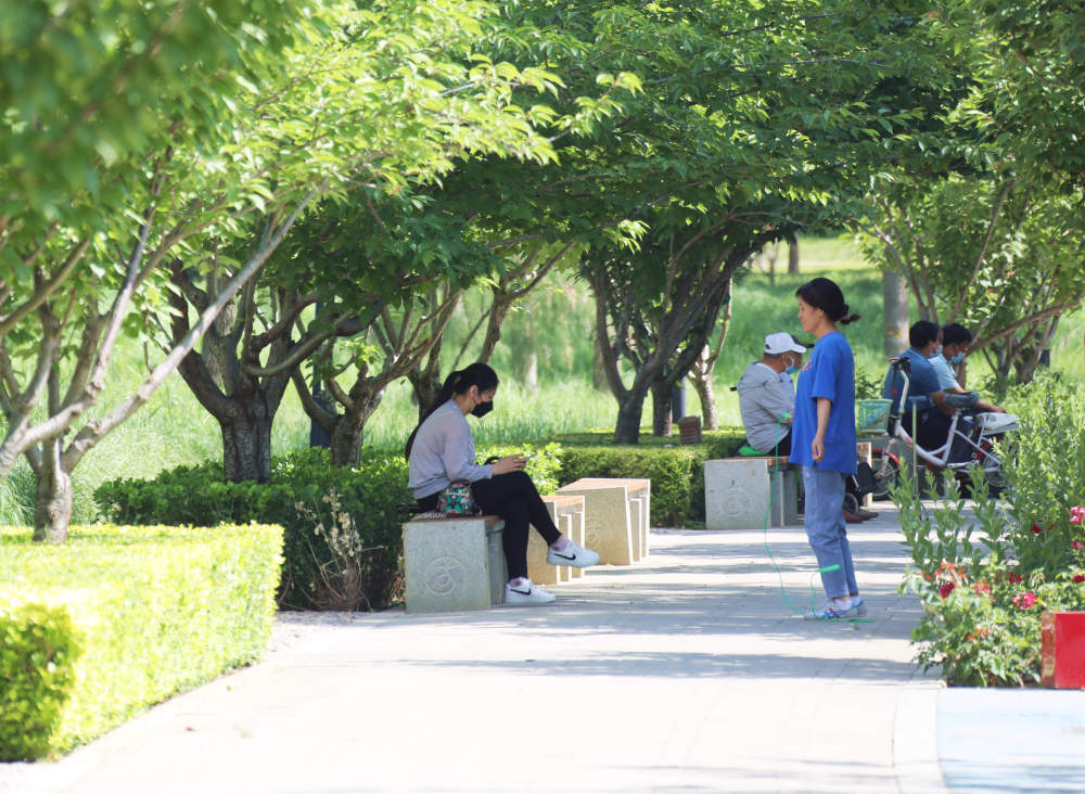 6月2日,居民在固安縣濱河生態(tài)運(yùn)動(dòng)公園休閑。(門叢碩 攝)