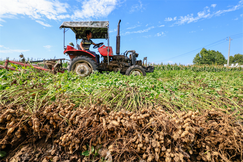 9月15日,唐山市豐南區(qū)大齊各莊鎮(zhèn)小齊各莊村農(nóng)民在田間收獲花生。