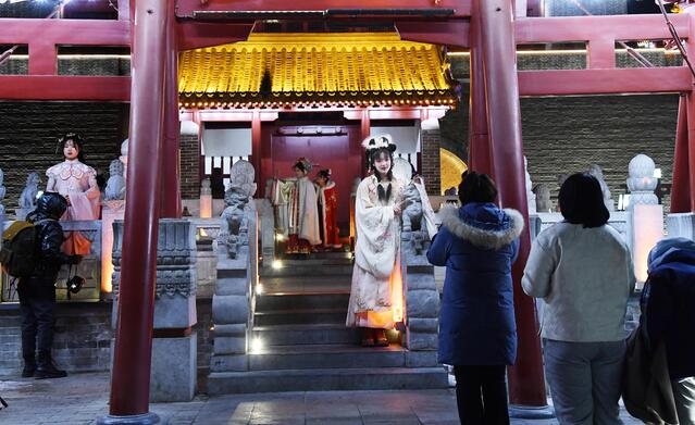 2月23日,在歷史悠久、素有“古建藝術寶庫”之稱的石家莊市正定古城,眾多年輕人穿著漢服古裝逛古城。穿古裝逛古城拍照打卡,已經成為今年新春年輕人喜愛國潮文化的一種潮流。石家莊市正定古城的古街古樓,古寺古塔、文化古跡瑰麗燦爛;華燈點亮的正定古城古韻、流光溢彩、熠熠生輝。穿著漢服古裝的眾多游客游覽古城,欣賞燈會,穿越時空體驗經典,沉浸式感受中華優(yōu)秀傳統(tǒng)文化的魅力。(記者 崔立卿)