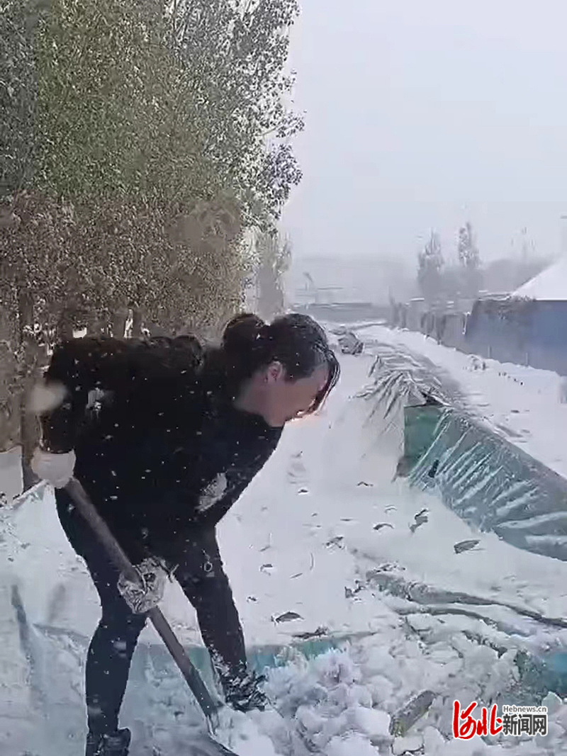李潤蘭在清理貨車苫布上的積雪。(供圖/李潤蘭