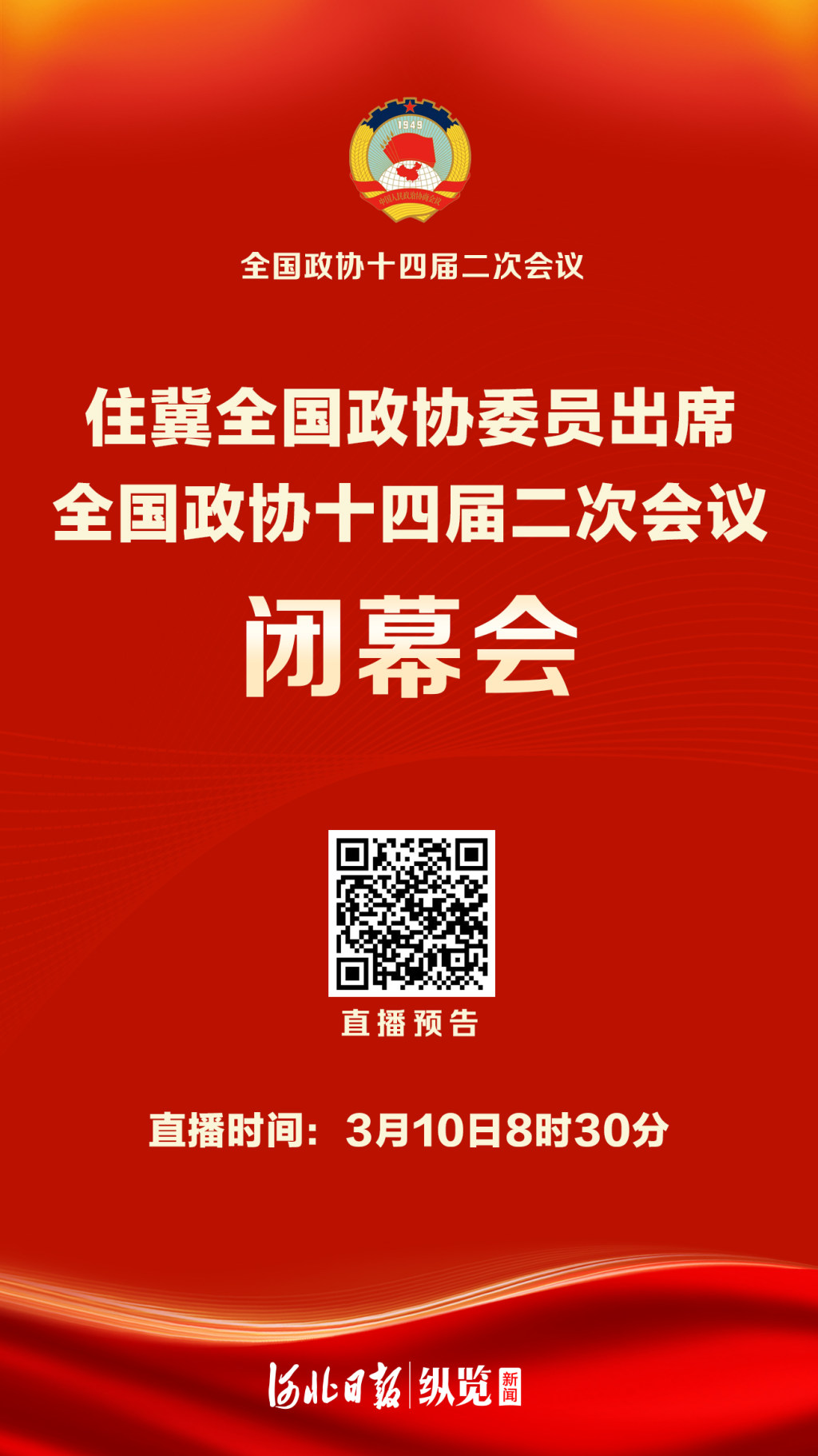 直播預(yù)告|住冀全國(guó)政協(xié)委員出席全國(guó)政協(xié)十四屆二次會(huì)議閉幕會(huì)
