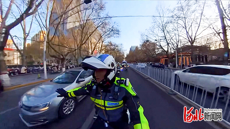 邯鄲交巡警機動執(zhí)勤一大隊鐵騎在為救護(hù)車開辟通道。(視頻截圖)