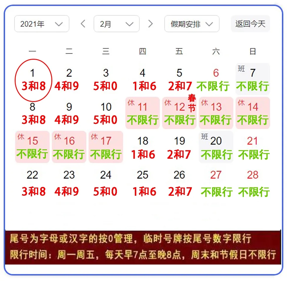 星期一:限行機(jī)動(dòng)車號(hào)牌尾號(hào)為3和8