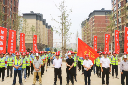 6月26日,按照雄安新區(qū)“十月突破當(dāng)先鋒,工地處處黨旗紅”主題活動(dòng)要求,中建二局北方公司容東片區(qū)G組團(tuán)景觀及小市政工程項(xiàng)目在雄安新區(qū)容東片區(qū)召開“保工期、保節(jié)點(diǎn)”誓師大會(huì),全面吹響向目標(biāo)沖刺的沖鋒號(hào),號(hào)召廣大參建人員鼓足干勁,奮戰(zhàn)10天,確保各項(xiàng)工程節(jié)點(diǎn)目標(biāo)順利完成。雄安集團(tuán)副總經(jīng)理翟偉、雄安萬科總經(jīng)理曾億、中建二局雄安分局副局長武建樂、中建二局北方公司董事長劉建釗等共計(jì)100余人參加。