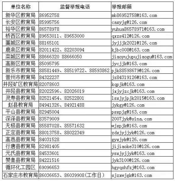 石家莊市教育局公布市、縣兩級校外培訓監(jiān)督舉報電話和郵箱