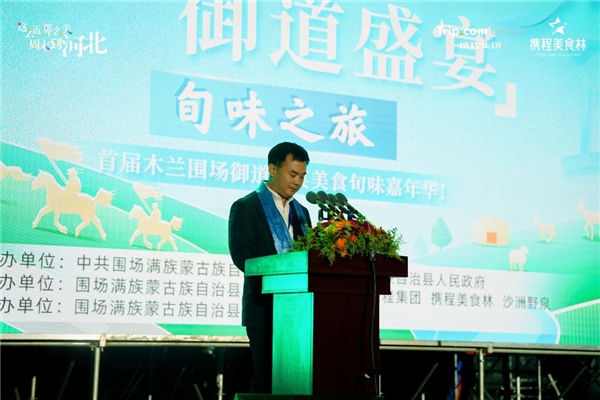 作為本次活動(dòng)的承辦方,攜程集團(tuán)副總裁兼華北總經(jīng)理李阿紅在活動(dòng)現(xiàn)場(chǎng)精彩致辭。李阿紅講到,圍場(chǎng)是“水的源頭、云的故鄉(xiāng)、花的世界、林的海洋”,是躲避炎炎夏日的天然大氧吧。攜程希望能將這里的自然資源,通過豐富多彩的形式,傳播給更多的旅行者。如今在各式旅游中,美食都扮演了十分重要的角色。因此作為攜程為用戶打造吃喝玩樂一站式服務(wù)中重要的一環(huán),美食林品牌將為講好圍場(chǎng)故事發(fā)揮重要作用。