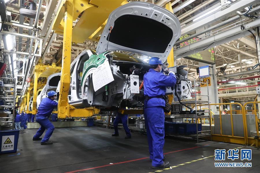 工人在上汽臨港工廠總裝車間生產(chǎn)線上作業(yè)(2月27日攝)。新華社記者 丁汀攝