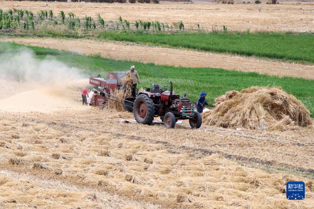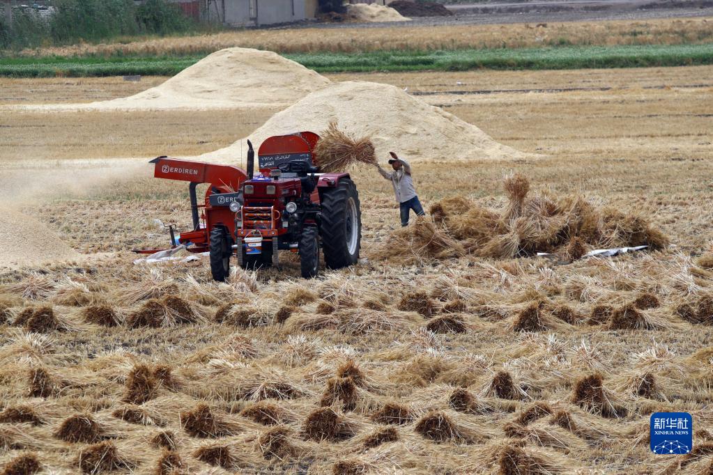 5月16日,在埃及本哈,農(nóng)民在田間收獲小麥。