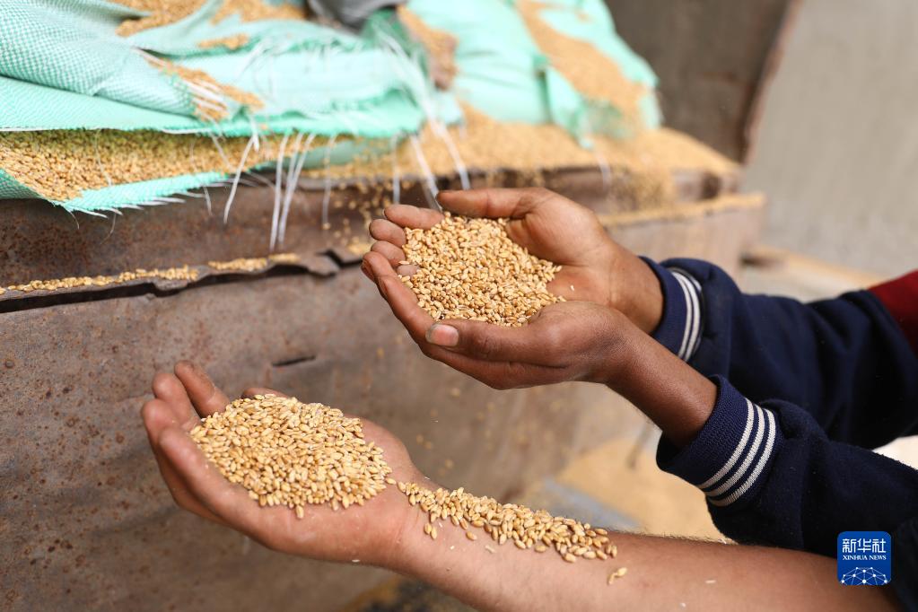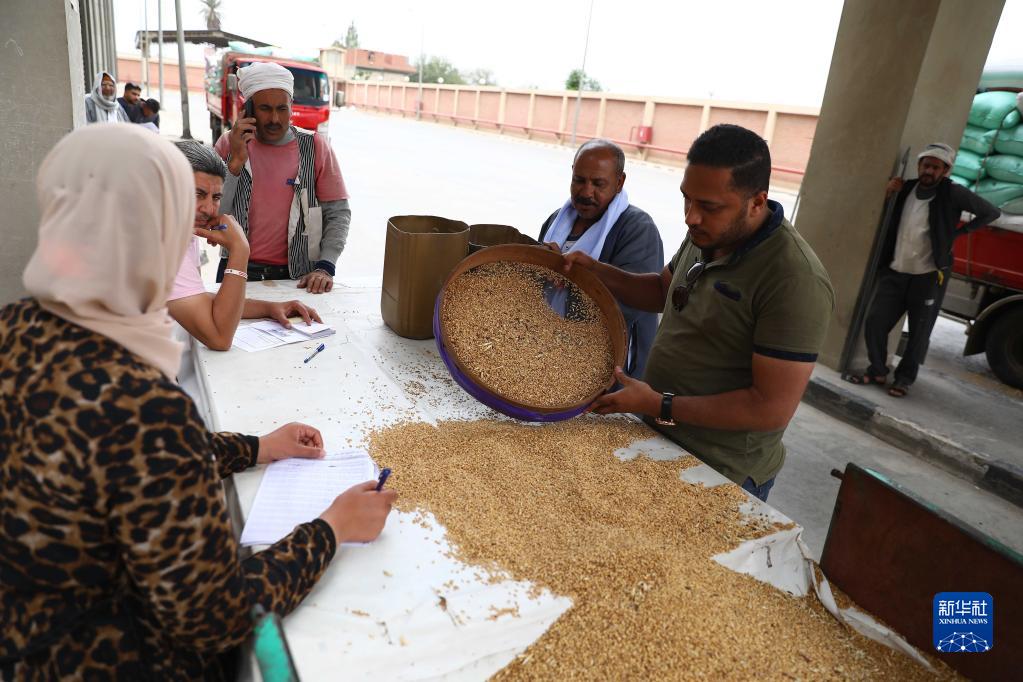 5月16日,在埃及本哈,收購小麥的人員檢查小麥質(zhì)量。