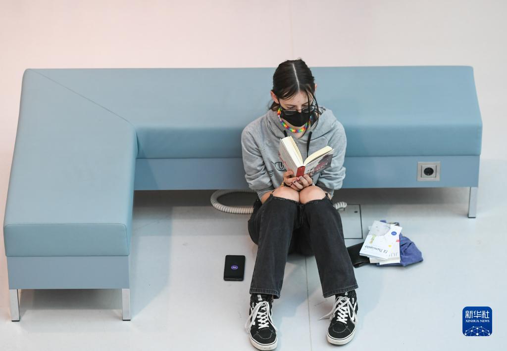 4月19日,一名女子在德國斯圖加特市立圖書館內(nèi)閱讀。